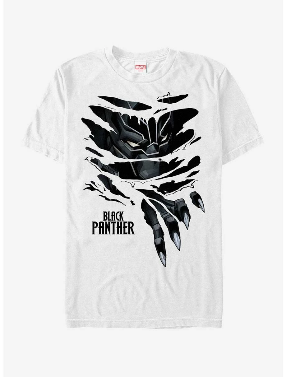 Black Panther’s golden Vibranium claws allow him to cut through almost anything…even the Marvel Black Panther Claw Tear Men’s T-Shirt! Black Panther’s eyes stare out from behind a tear-style print down the front of this awesome Marvel shirt.
